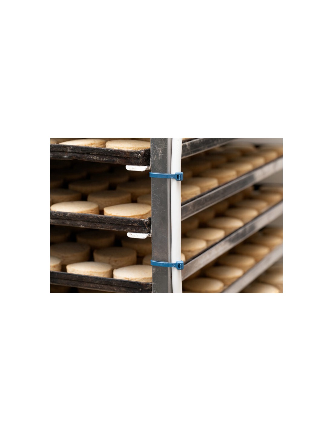 Fabricadas em Poliamida 6.6 com partículas metálicas, possuem propriedades magnéticas que permitem a deteção por detetor de metais, bem como por equipamentos de inspeção de raios X. Além disso, a sua particular cor azul facilita a deteção visual.