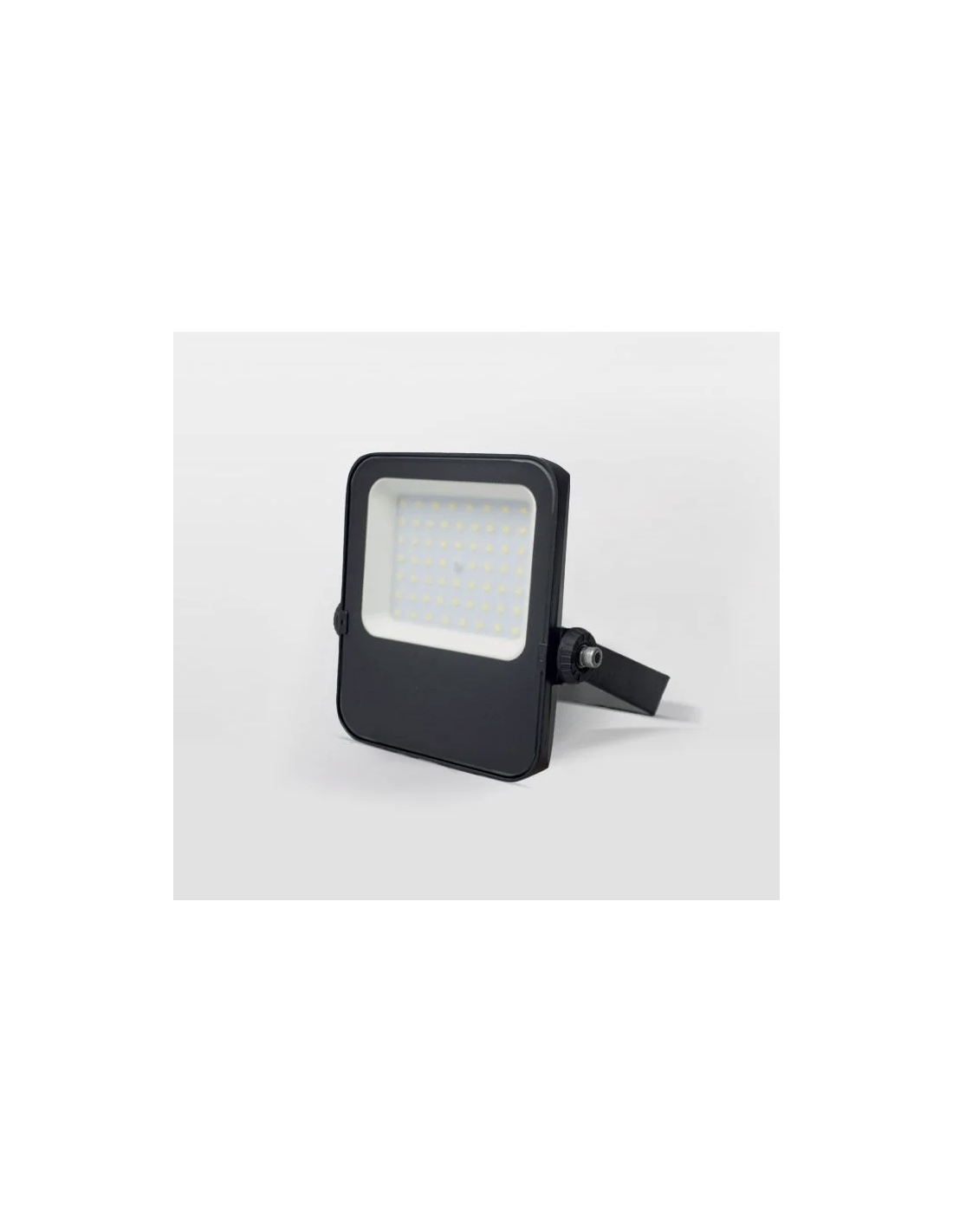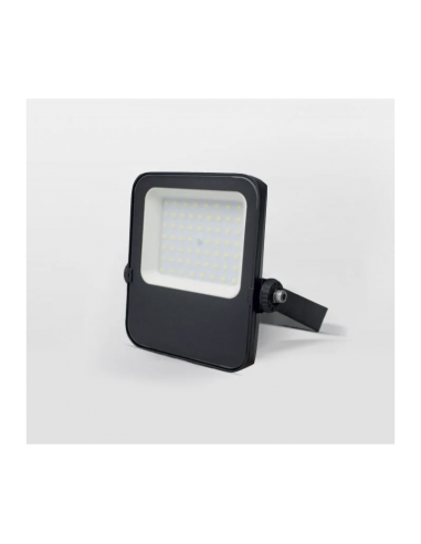 Projetor LED MAXLED Slim 50W, corpo preto compacto e robusto, ideal para iluminação exterior de alta eficiência. Oferece fluxo luminoso de 5000 lm e temperatura de cor de 5000K (branco neutro), garantindo iluminação clara, uniforme e económica. Fabricado em alumínio com vidro temperado, assegura boa dissipação térmica, durabilidade e fiabilidade. Com proteção IP65 contra poeira e jatos de água, é indicado para fachadas, entradas, jardins, garagens, armazéns e áreas comerciais.