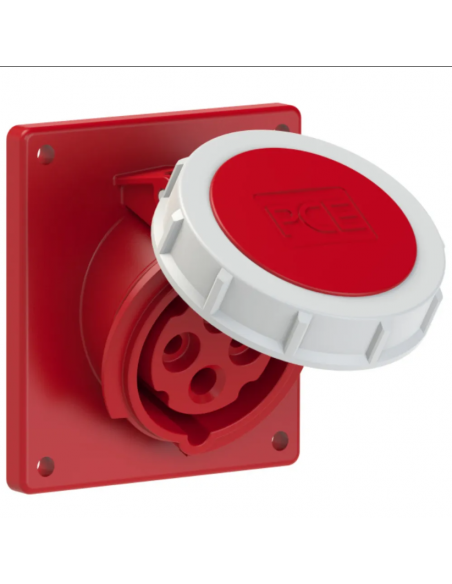 A tomada fêmea de embutir CEE PCE é indicada para ligações trifásicas sem neutro, suportando até 16A em 400V AC (50/60Hz).