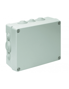 Caixa estanque com passa-cabos integrada, ideal para ligações elétricas rápidas e seguras em instalações interiores e exteriores. Com dimensões de 130×90×65 mm, permite a entrada direta de cabos através de membranas elásticas, dispensando acessórios adicionais. O grau de proteção IP54 assegura resistência contra poeiras e projeções de água, sendo adequada para aplicações residenciais, comerciais e industriais leves. Fabricada em material de elevada durabilidade, garante proteção prática e eficiente das suas ligações elétricas.