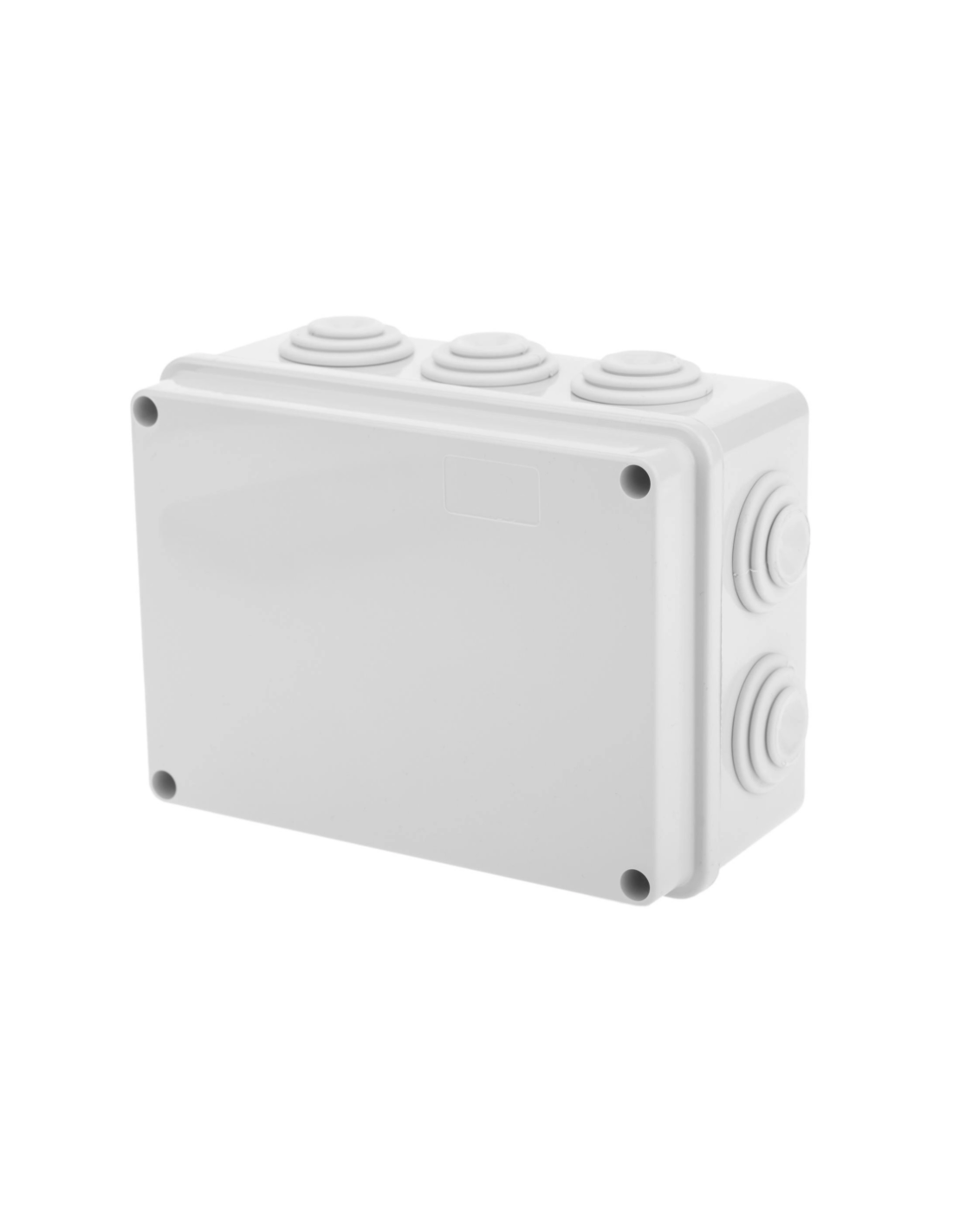 Caixa estanque com passa-cabos integrada, ideal para instalações elétricas que exigem proteção fiável e facilidade de ligação. Com dimensões de 190×140×75 mm, oferece espaço adequado para derivação e organização de cabos. Os passa-cabos elásticos permitem a entrada direta de cabos sem necessidade de acessórios adicionais, otimizando o tempo de instalação. O grau de proteção IP54 assegura resistência contra poeiras e projeções de água, tornando esta caixa adequada para aplicações residenciais, comerciais e industriais, em ambientes interiores e exteriores.