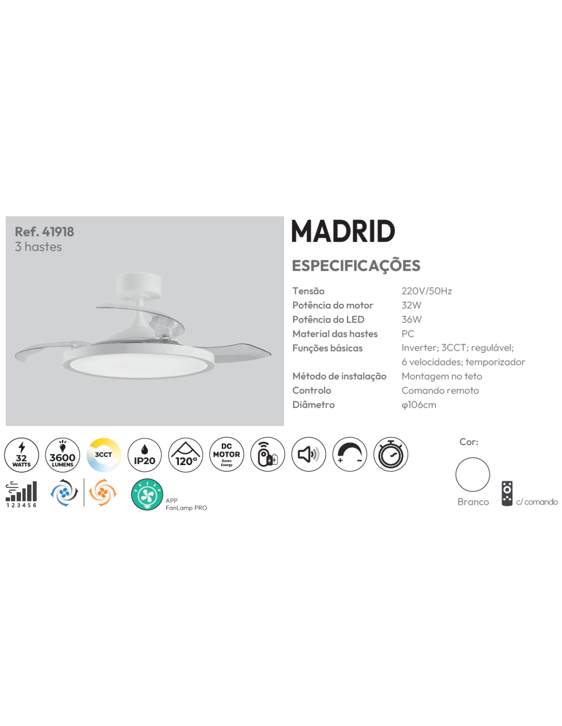 VENTOINHA DE TECTO COM PAS RETRATEIS - BRANCO